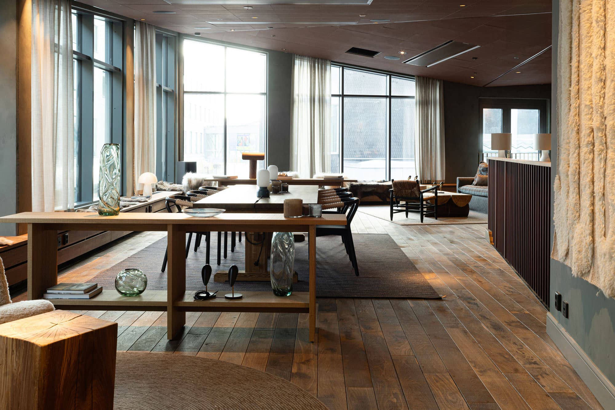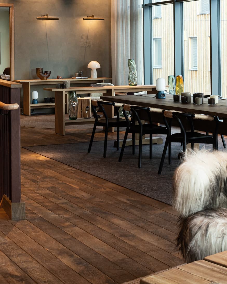 1569 får sin bruna kulör tack vara anrökning. Träet placeras i slutna kammare med ammoniakgas där garvsyran i träet reagerar med ammoniaken och färgar träet mörkt brunt. Enastående skiftningar mellan årsringar, ev. splint etc. ger ett trä med mycket naturlig känsla och fantastiskt liv, naturens egen design varsamt tillvaratagen genom äkta hantverk, helt utan färgpigment.