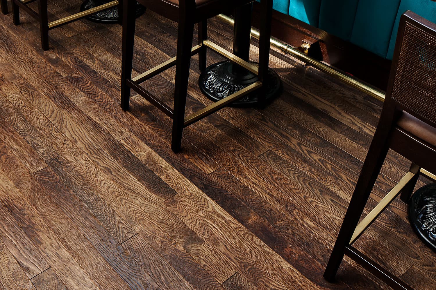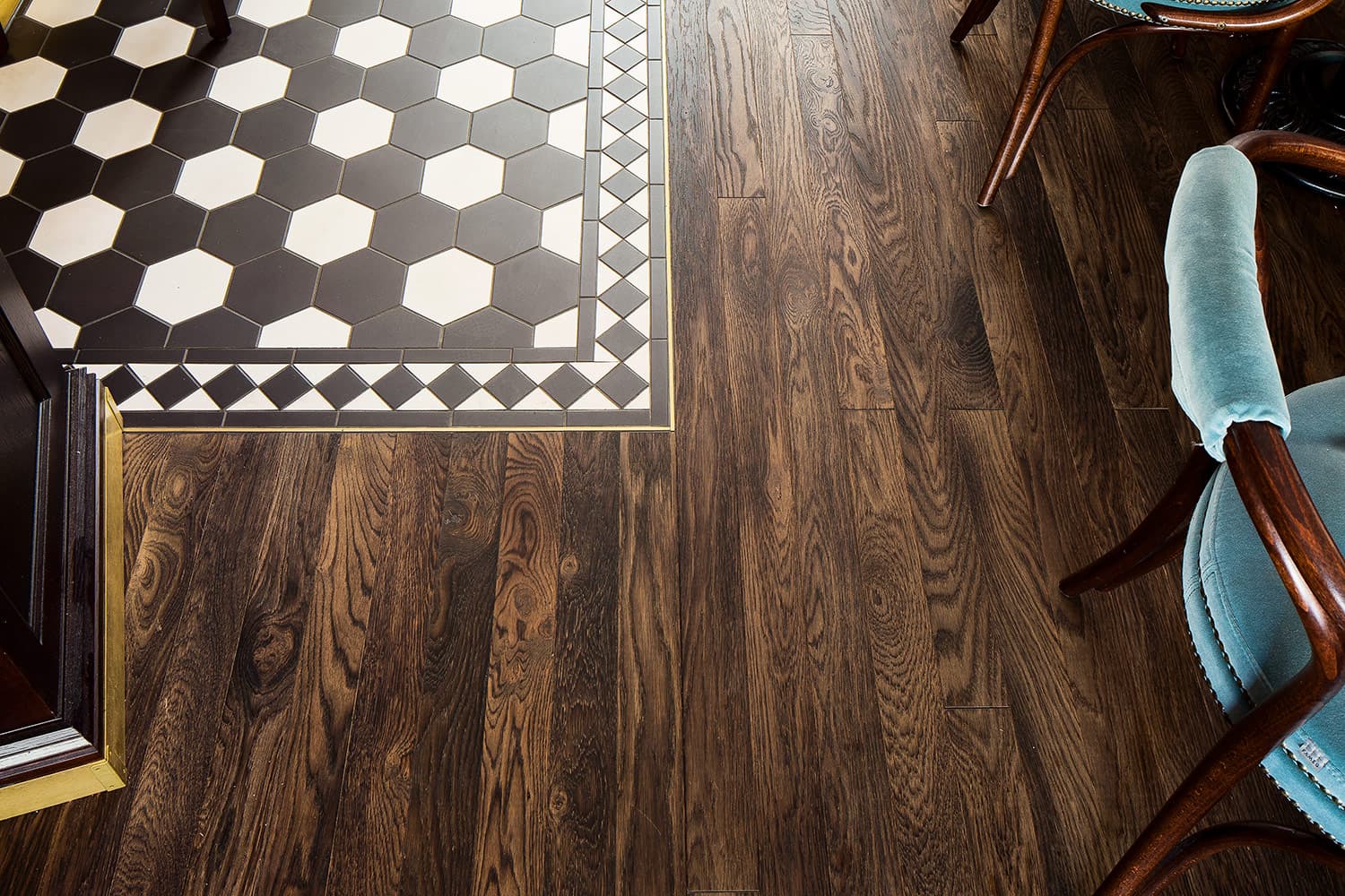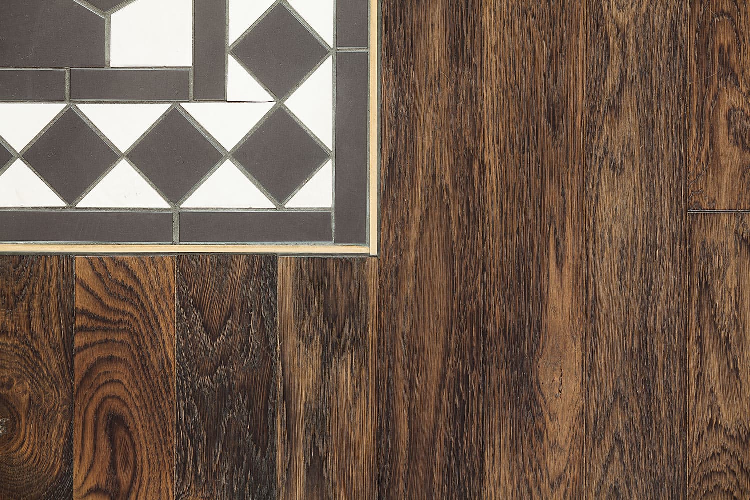 Med massiva trägolv får du enkelt snygga möten mellan olika material.