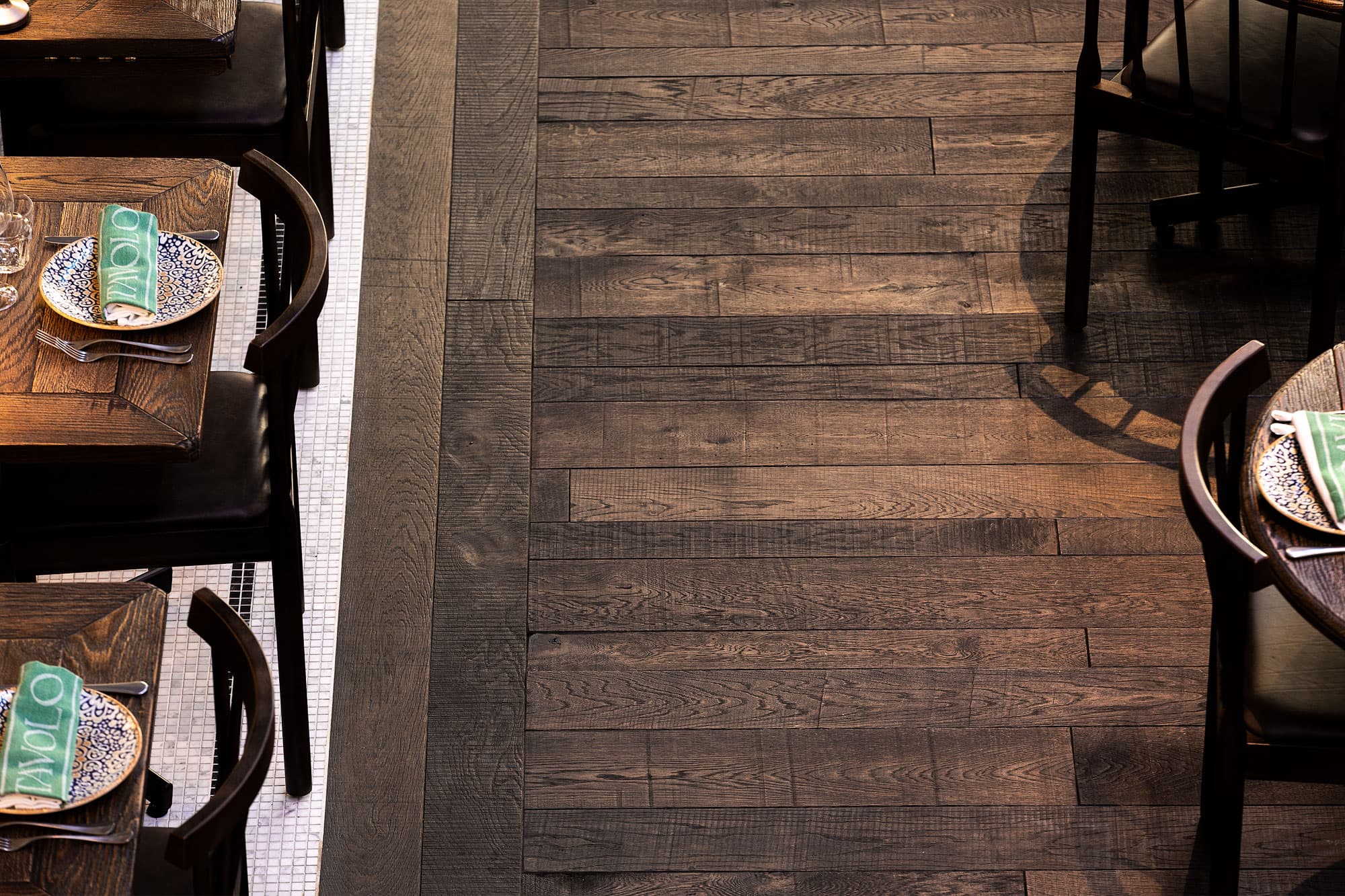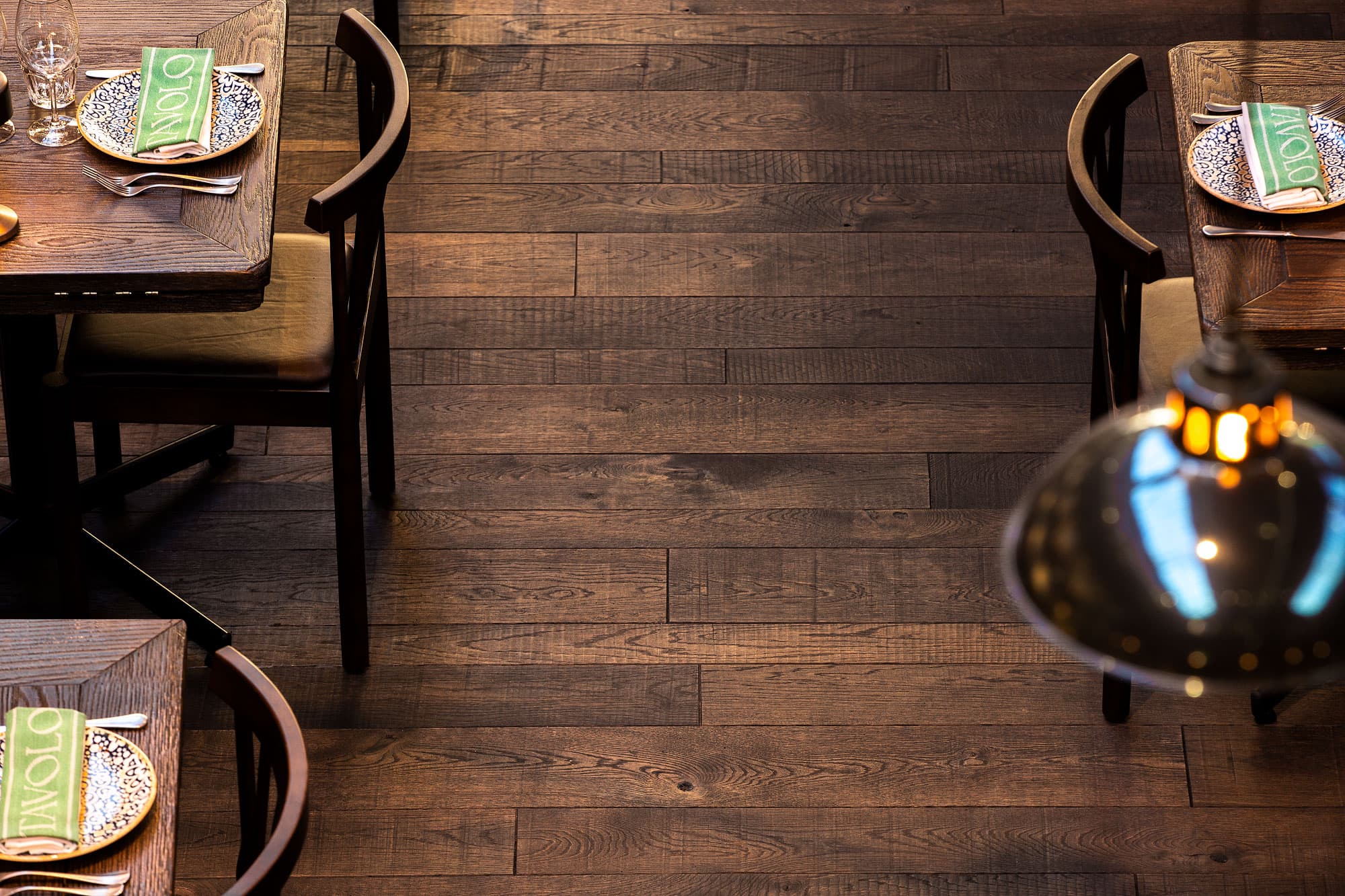 TAVOLO på Magasinsgatan är Göteborgarnas nya favorittillhåll. Det gamla artilleristallet från 1800-talet är renoverat och omvandlat till italiensk restaurang. Almedalsgolv har levererat 400 kvm Ädelträtiljor, speciellt framtagna för TAVOLO. Golvet är rustikt med synliga sågränder, nivåskillnader och färgskiftningar. Tiljorna är tillverkade i flera olika bredder som är lagda oregelbundet.