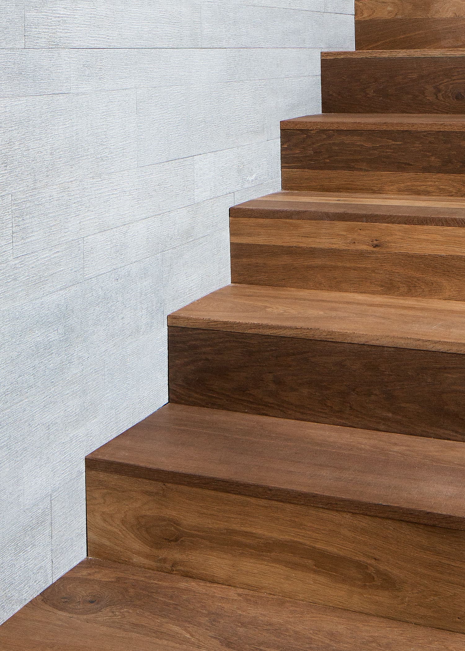 Färdiga trappsteg levererade som plan- och sättsteg. Fjäder i överkant av sättsteget. Fabriksbehandling 1408 är anrökt med matt hårdvaxolja.