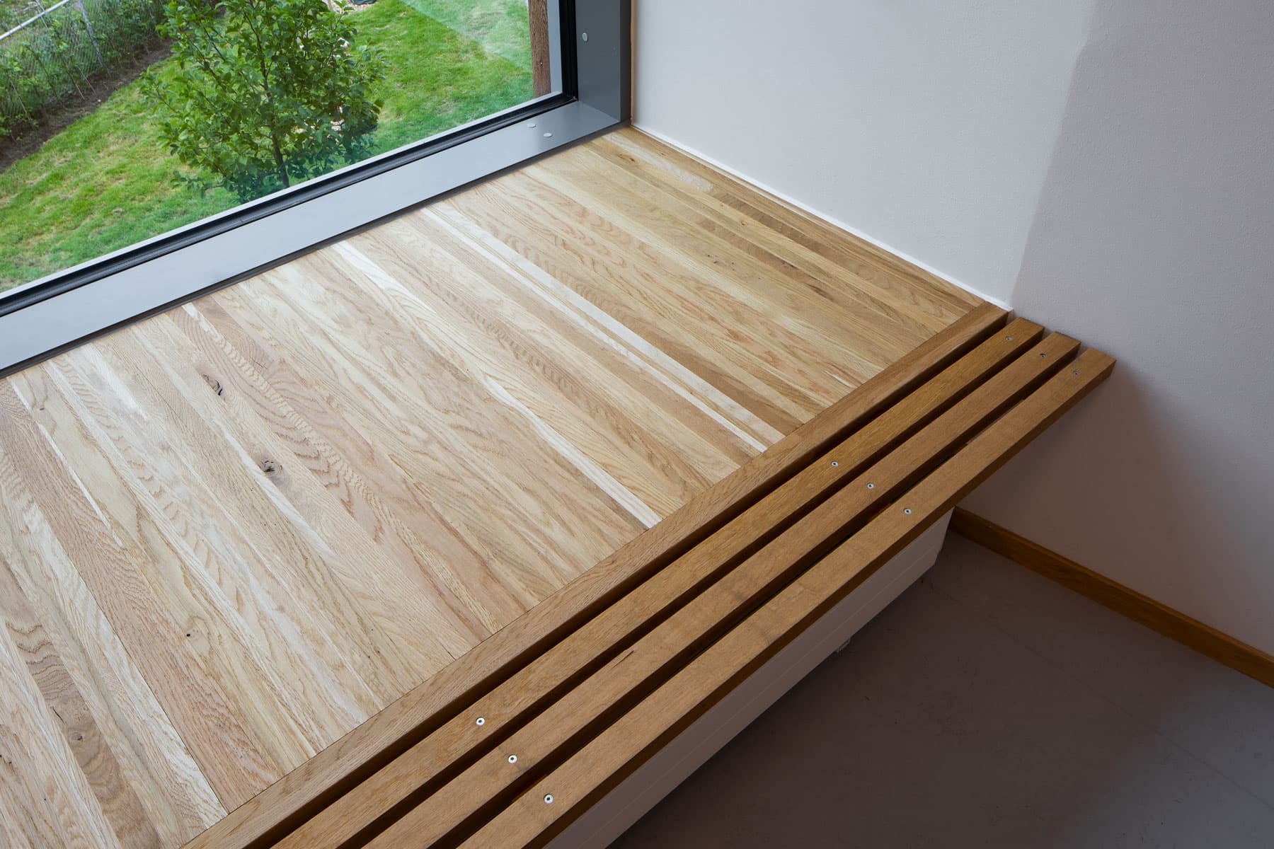 Utöver trappa och gradäng levererades material till flera sittytor, bland annat breda fönsternischer och gradänger i klassrummen.