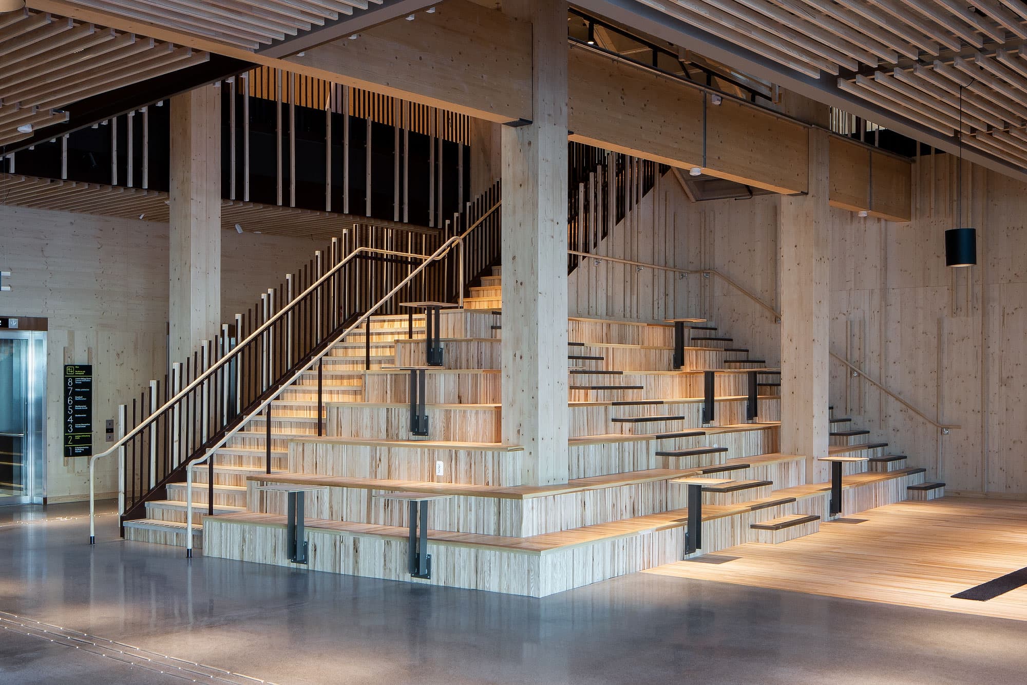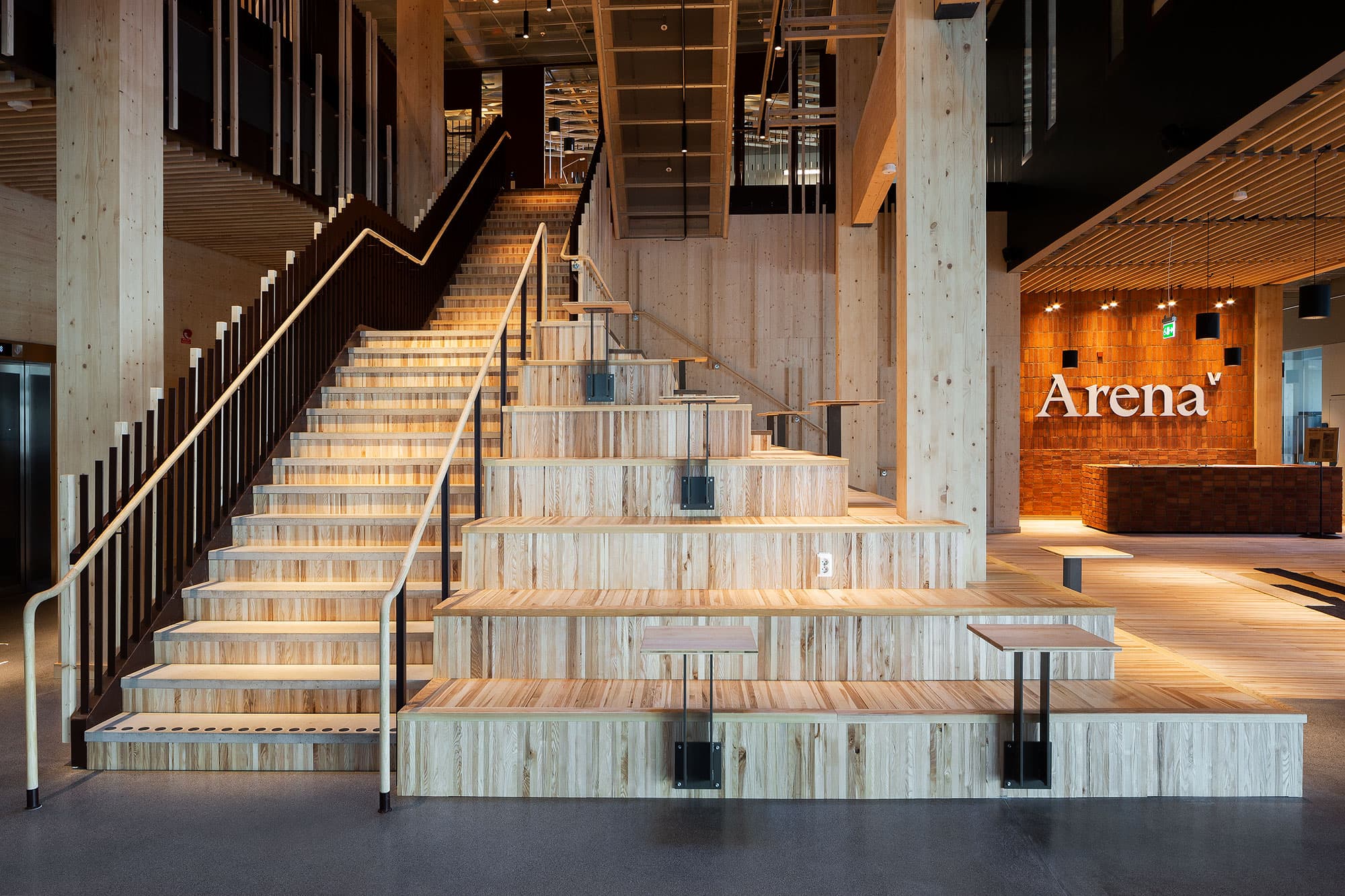 Magasin X är Sveriges största kontorshus med en stomme helt byggd i trä. Byggnaden är miljöcertifierad enligt LEED Platinum som är den högsta klassningen.