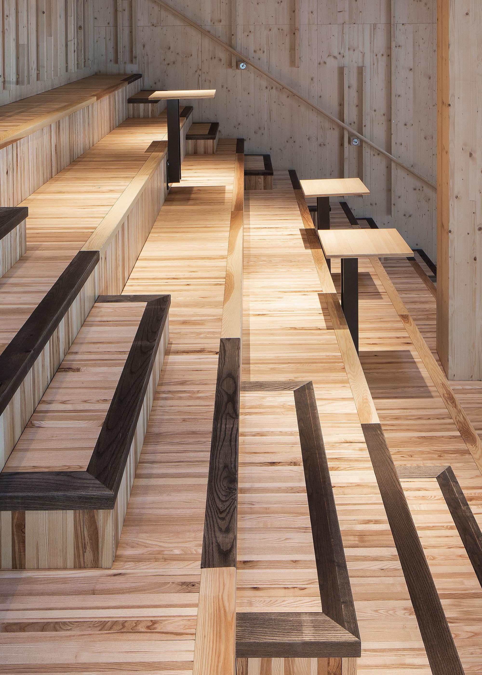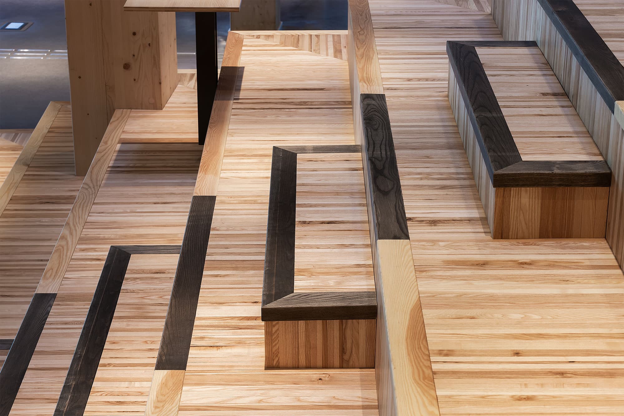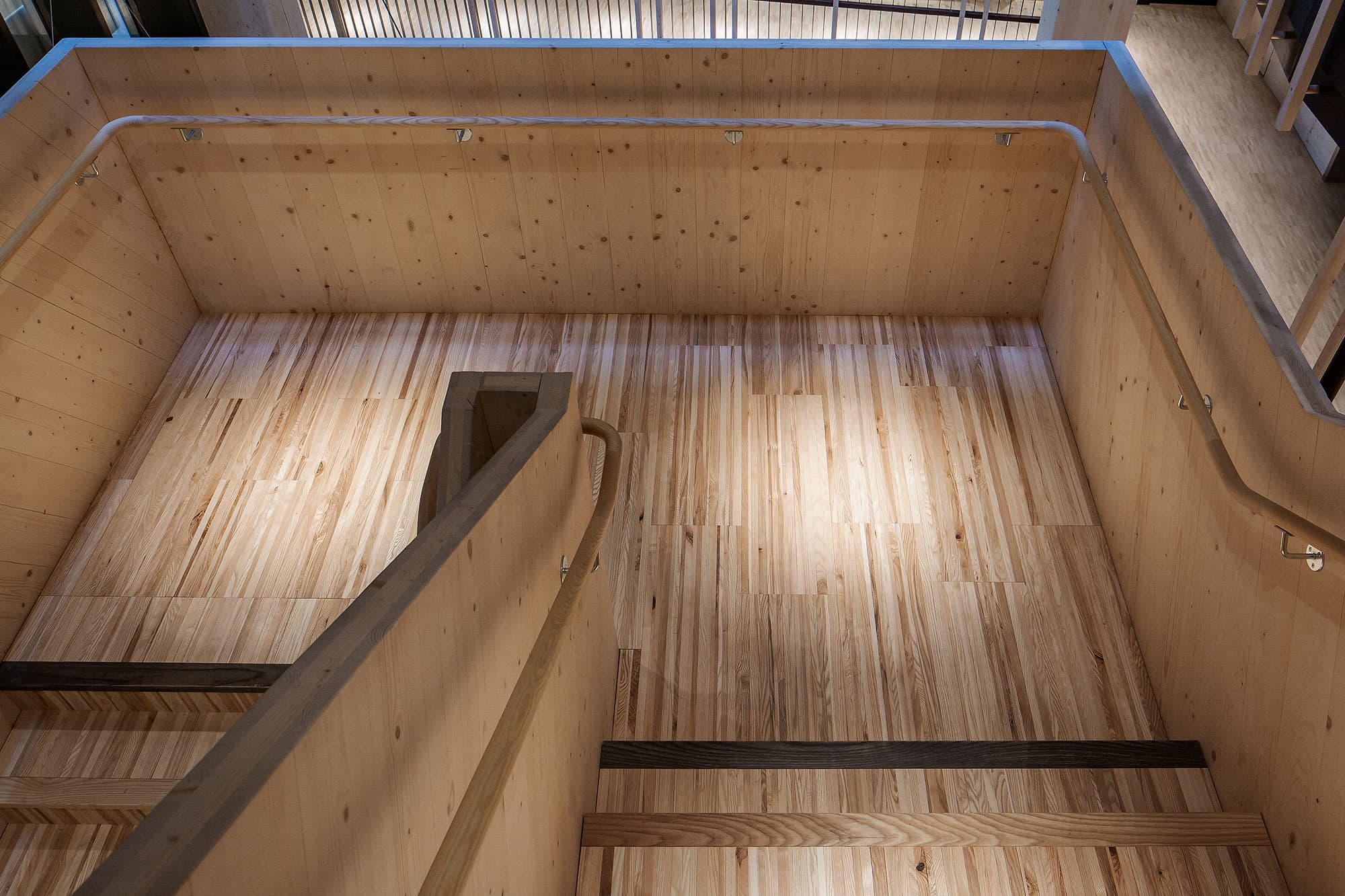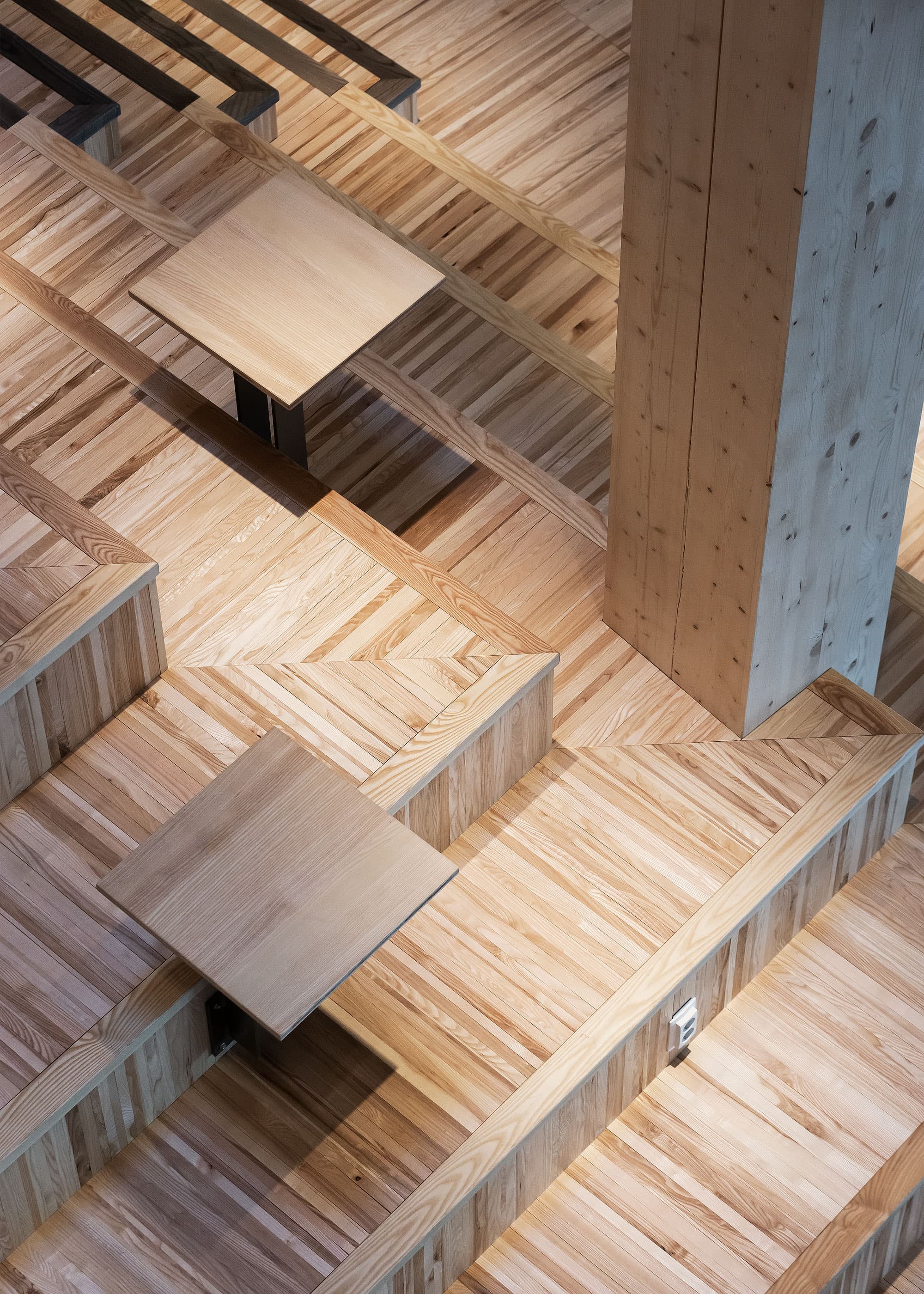 Trappa och gradäng till Magasin X i Uppsala. Trappan och sittgradängen är tillverkad av vår Industriparkett Design XL i ask. Sätt- och plansteg levereras måttanpassade, slipade och ytbehandlade med sidenmatt hårdvaxolja.