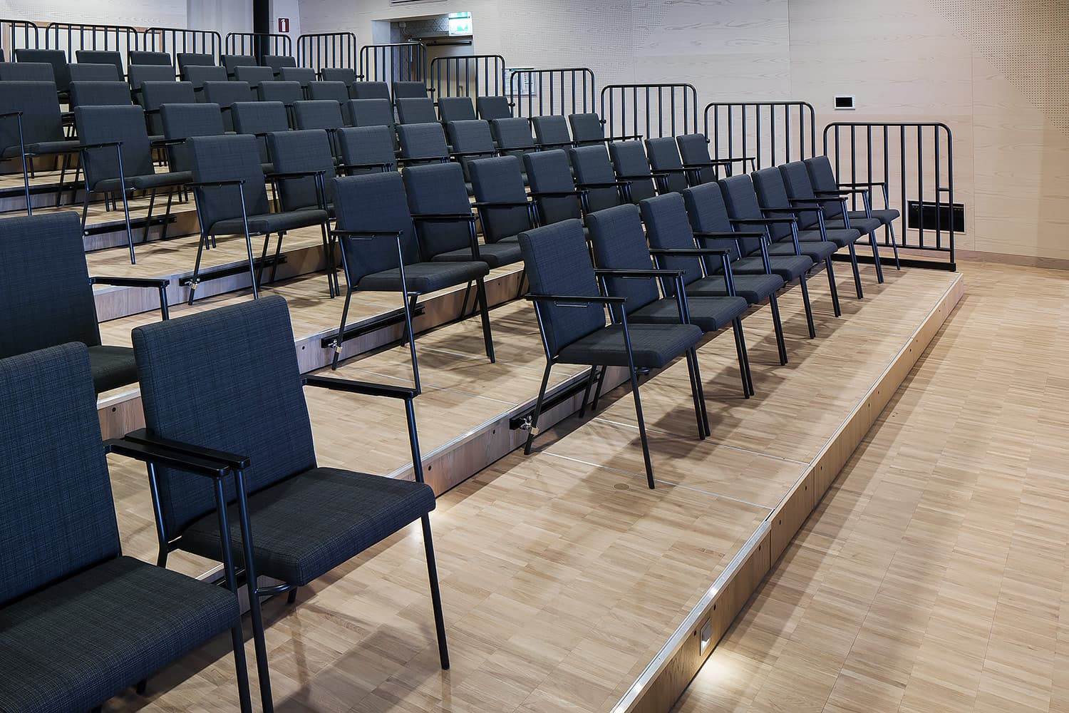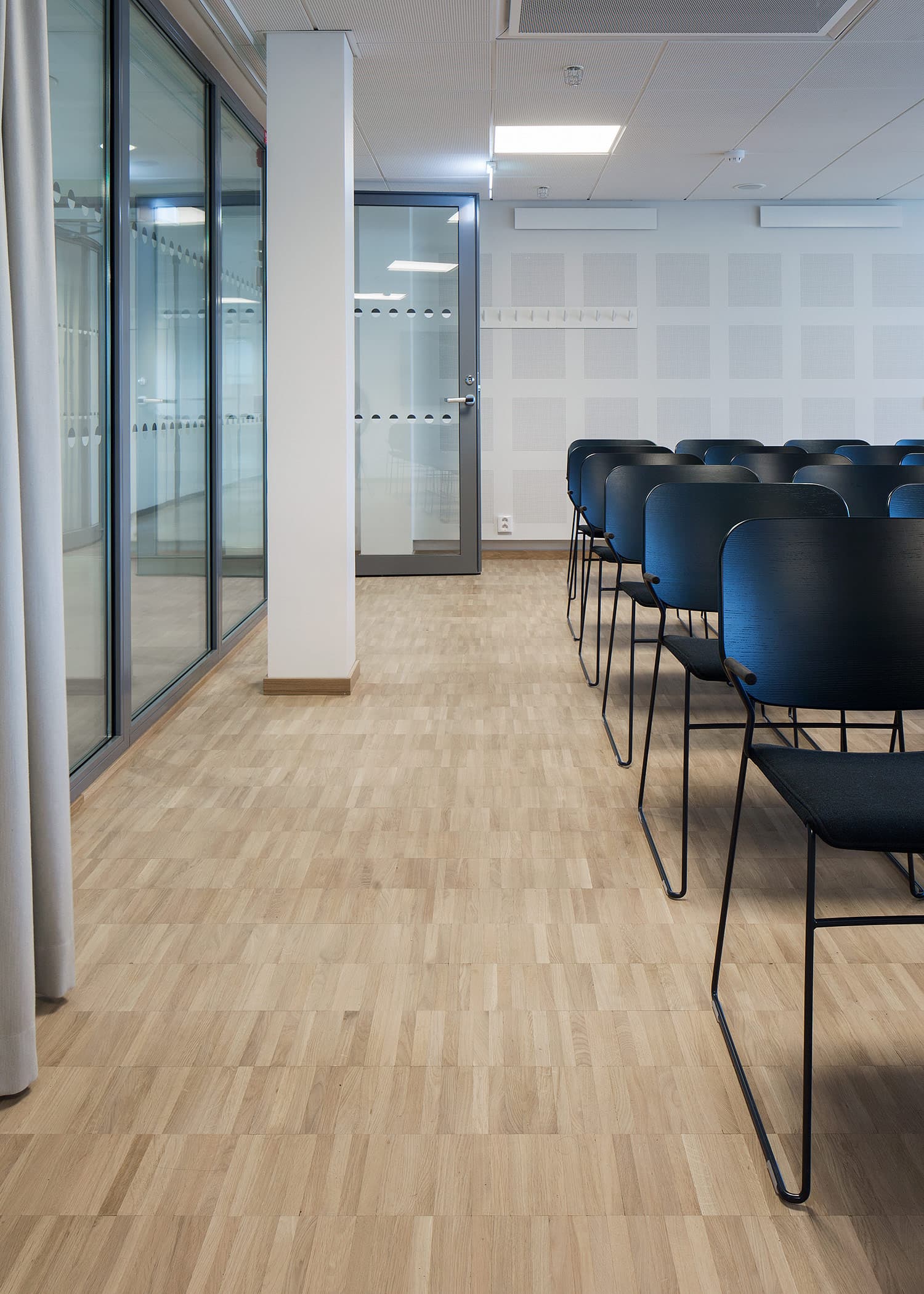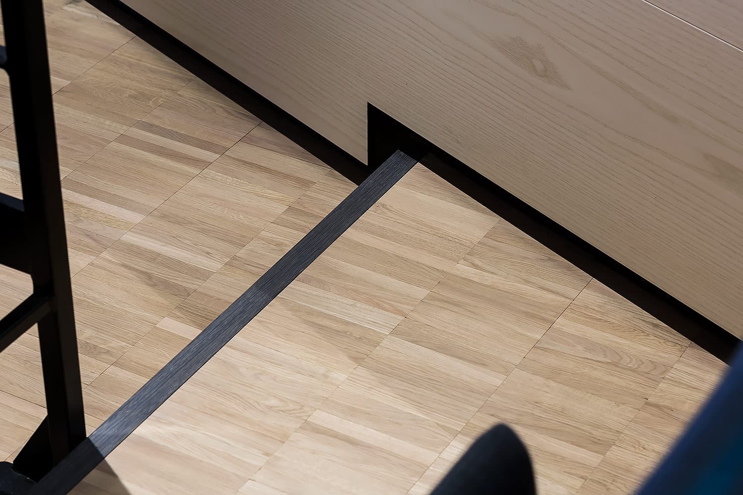 Trapporna består av vår industriparkett Design 2.0 samt fabriksfärdiga trappnosar med integrerad kontrastmarkering.
