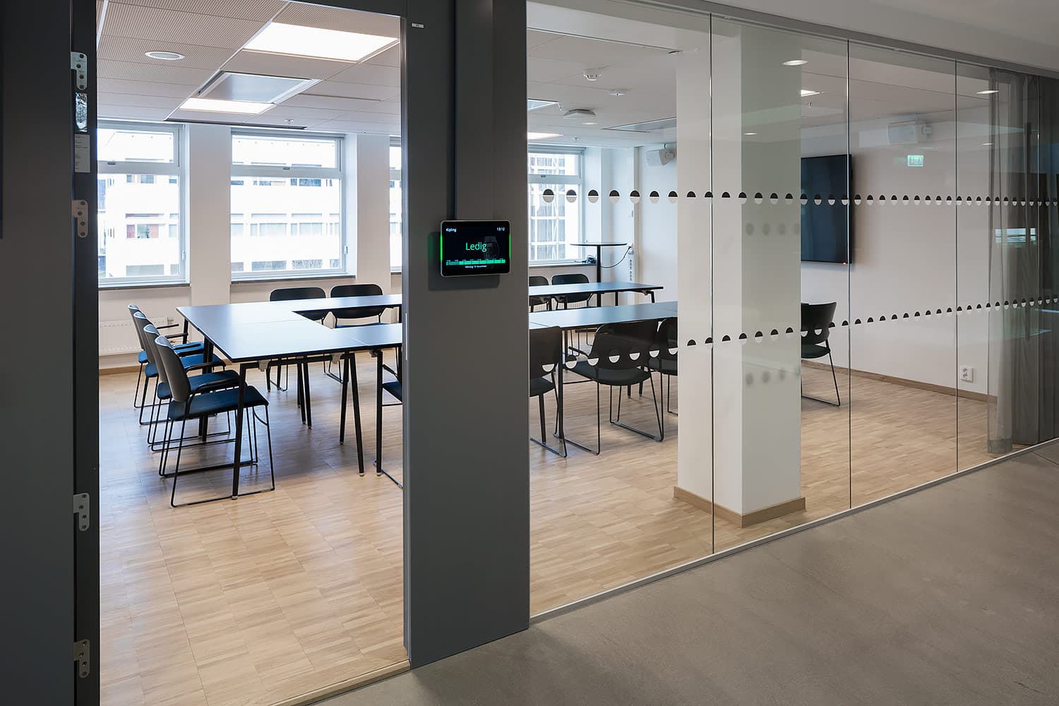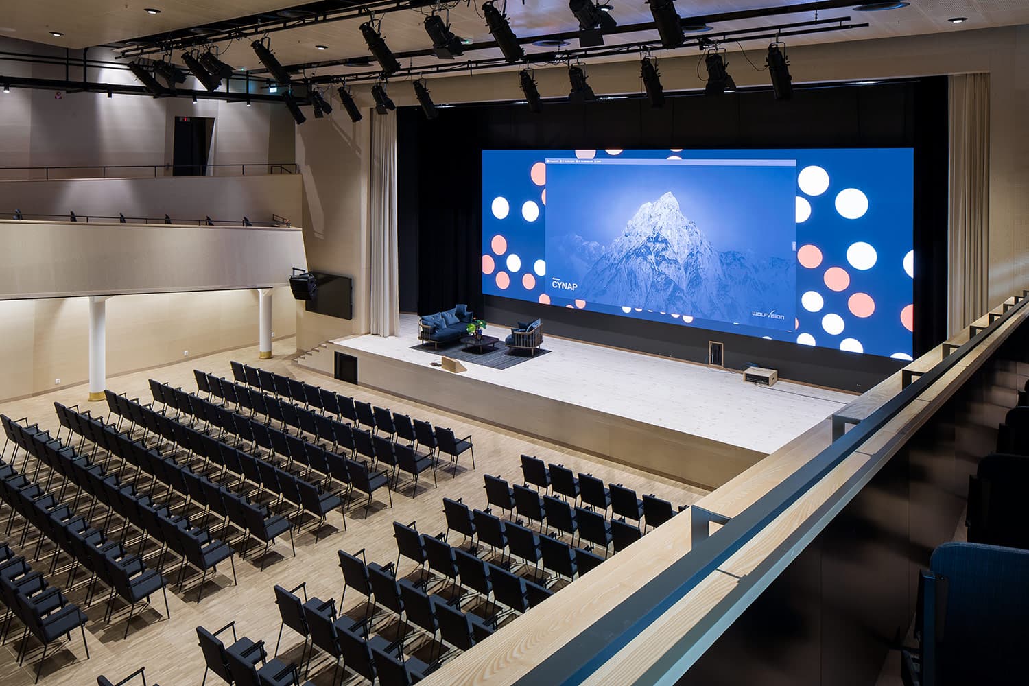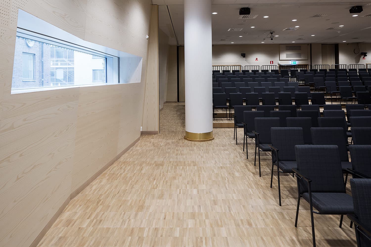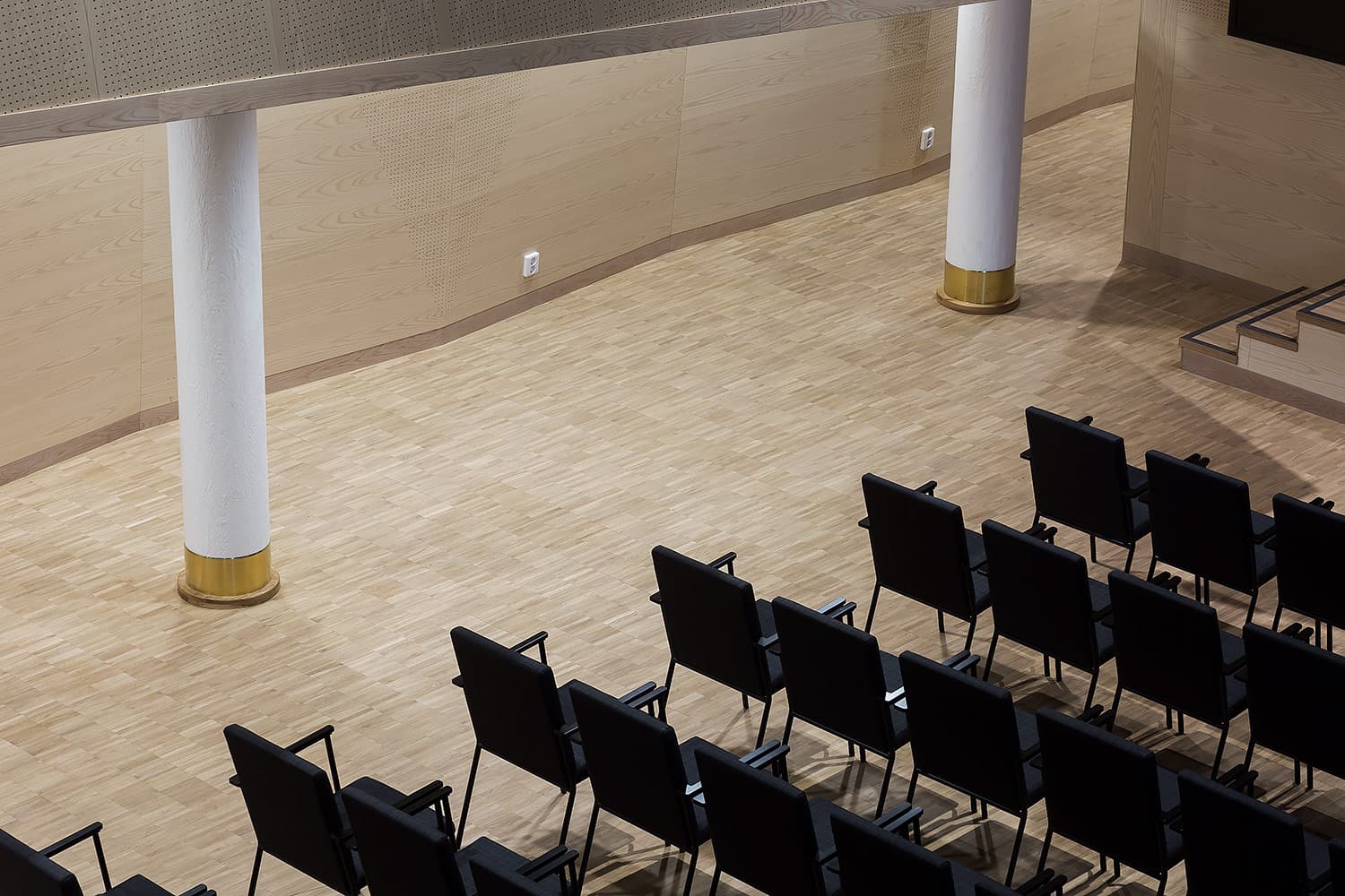 Trapporna består av vår industriparkett Design 2.0 samt fabriksfärdiga trappnosar med integrerad kontrastmarkering.