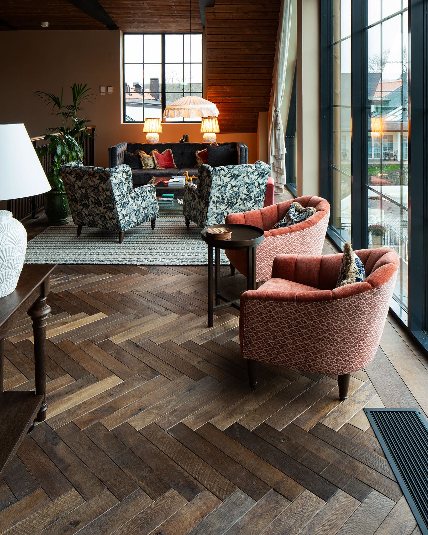 2100 är en mycket rustik massiv stav med ojämn yta och sågstruktur. Golvet får sin mörka kulör genom anrökning. En naturlig process där golvet placeras i slutna kammare med ammoniakgas där garvsyran i träet reagerar med ammoniaken och färgar träet mörkt brunt. Olika delar av träet färgas olika mycket på grund av ph-värden, hur mycket garvsyra träet innehåller samt tiden i kammaren. På detta sätt får varje planka sin unika karaktär.