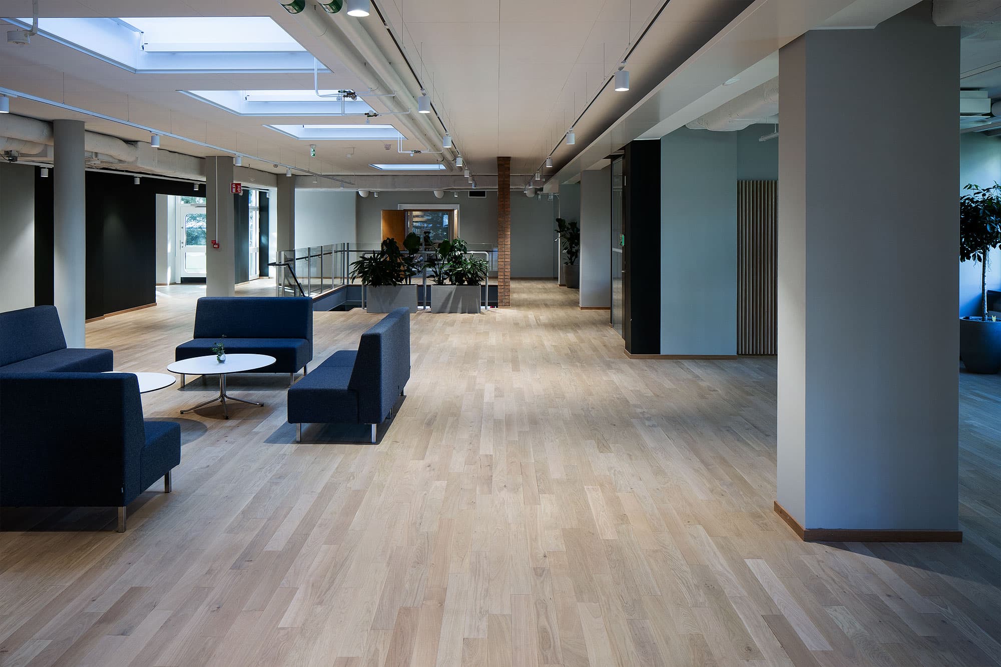 När Stockholms Byggmästareförening skulle renovera sina lokaler i Stockholm var de tydliga med att de ville arbeta med bra materialval med lång livslängd och hög kvalitet. Med sådana värdegrunder och med en sådan kravspecifikation är vi extra glada och stolta över att valet föll på Almedalsgolv, både till golvytor och gradängtrappan som binder samman våningsplanen.