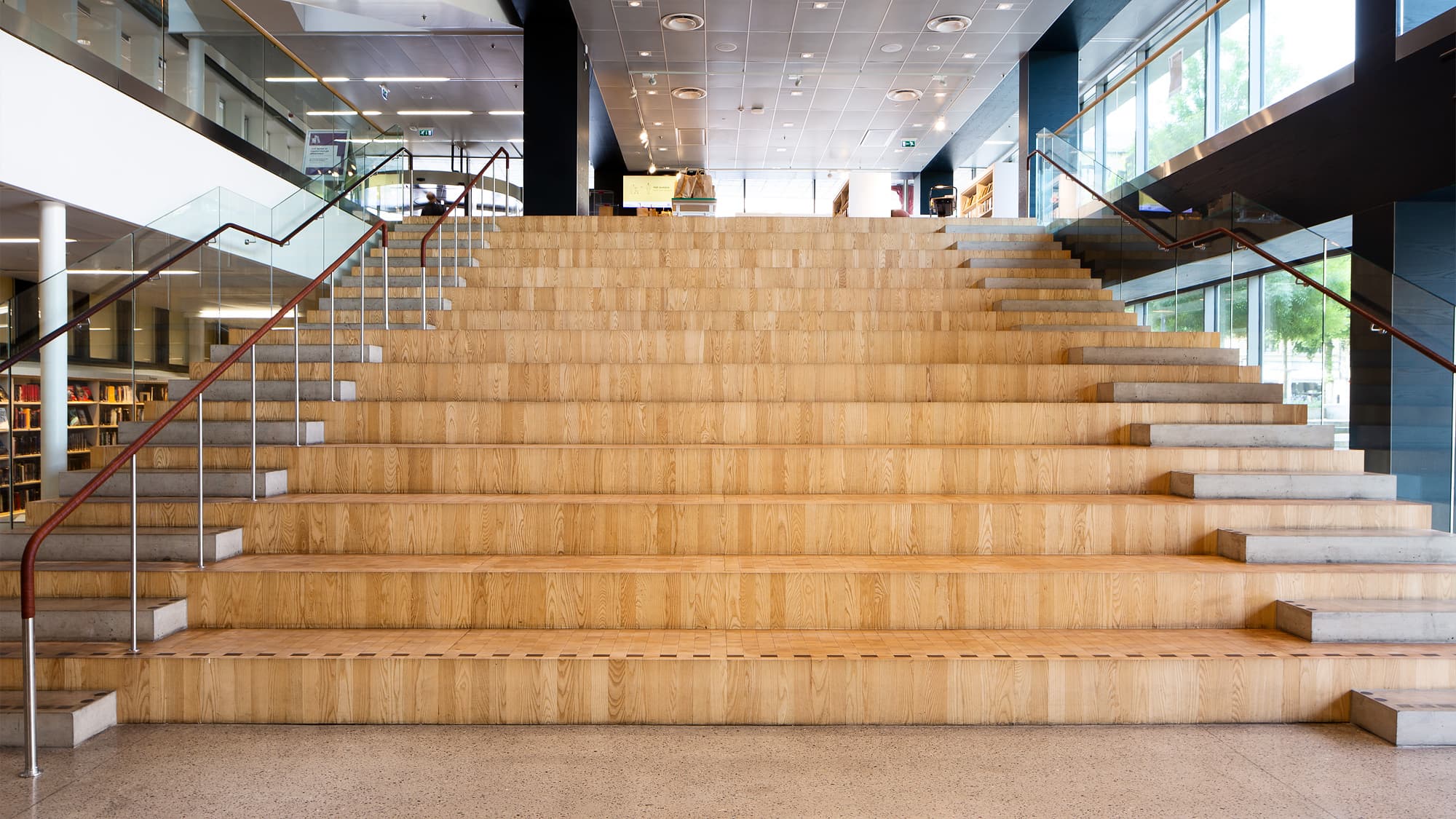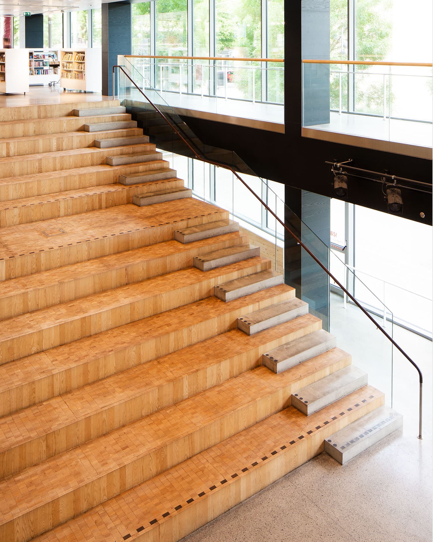 På Stadsbiblioteket i Göteborg hittar vi en av våra första kubbtrappor. Trapporna i askkubb levererades 2013. Vi åkte tillbaka för en okulär besiktning och ett samtal med kommunikationschef Jill Danielsson om hur de dagliga städrutinerna ser ut och hur trapporna underhållits genom åren.