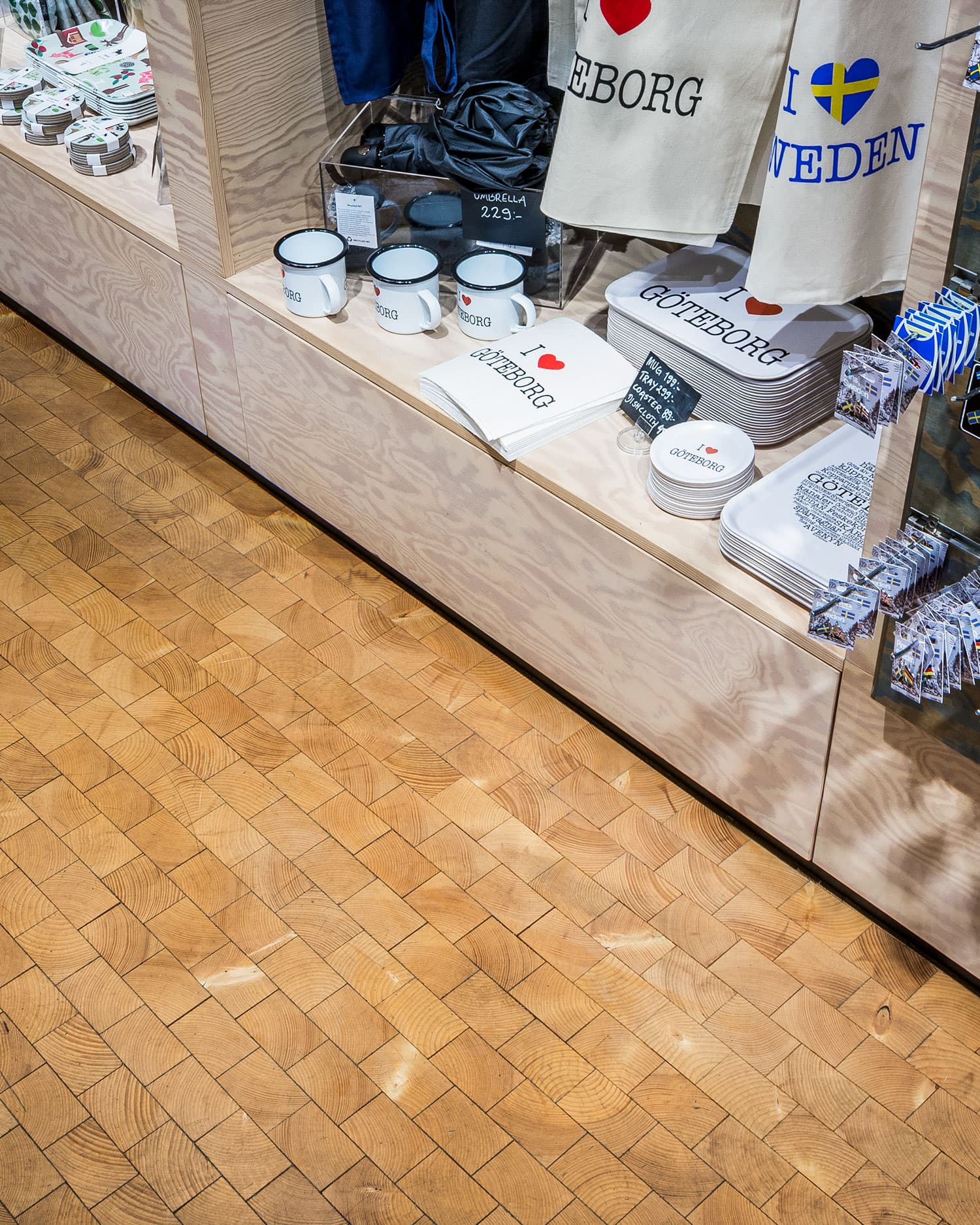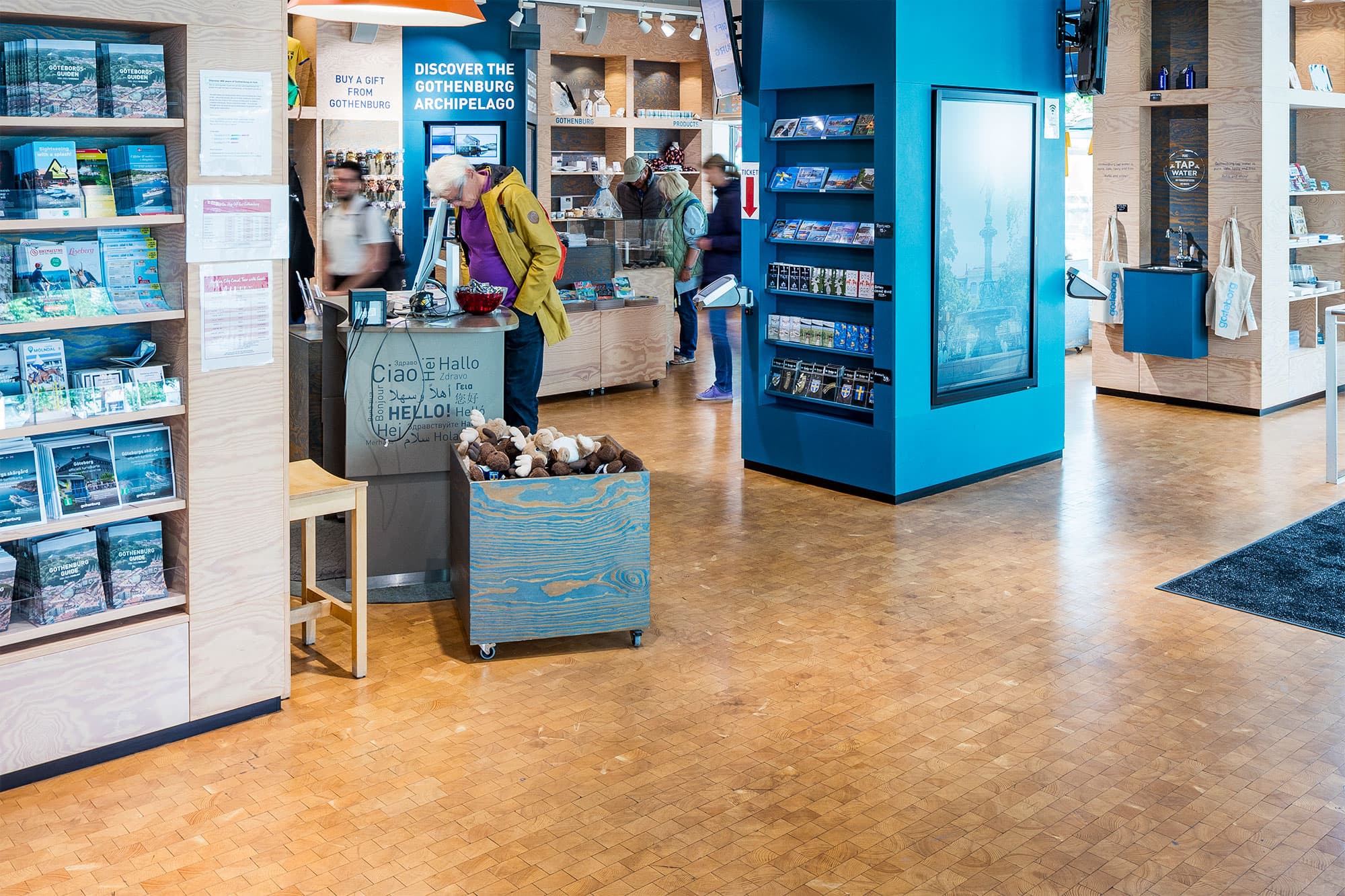 2017 levererade vi Kubbgolv Base i gran till Göteborgs Turistbyrå. Med ett besöksantal på ca 100.000 per år har golvet verkligen fått bekänna färg.